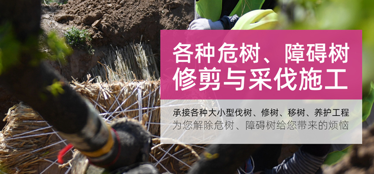 本公司具有高水平的施工隊(duì)伍、先進(jìn)的采伐工具,高超的高空作業(yè)技術(shù)、誠(chéng)信的服務(wù),完善的管理。常年承接各種大小型伐樹(shù)、修樹(shù)、移樹(shù)、養(yǎng)護(hù)工程。常年為各大倉(cāng)庫(kù)、部隊(duì)院校、工廠和小區(qū)物業(yè)進(jìn)行樹(shù)木的修剪及采伐施工,為您解除危樹(shù)、障礙樹(shù)給您帶來(lái)的煩惱,真誠(chéng)尋求各單位綠化隊(duì)的合作與支持。